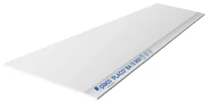 Placa de Yeso Laminado con cartón a doble cara y alma de yeso de origen natural de 12,5 mm de espesor y 600 mm de anchura, que por sus dimensiones está definida para su uso en Obras de Rehabilitación.